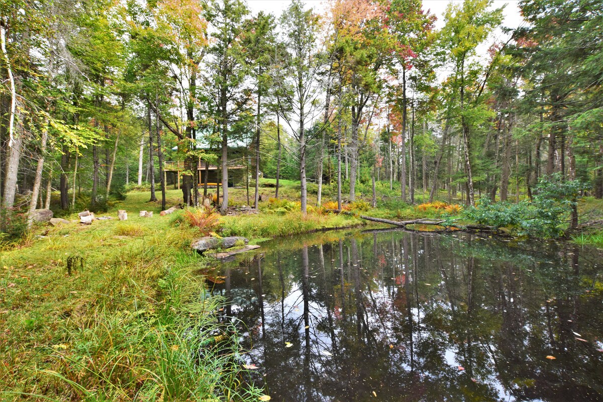 ロングレイクの静かな池のほとりにある、8人用の3~4ベッドルームのウォーターフロントの家。 池を見渡せるデッキ、2階の主寝室スイート。インテリアと家具は新しくしました。14エーカーのモーターなしの池で泳いだりカヤックを楽しんだり、ファイヤーピット、ハンモック。 私道、イートン湖まで徒歩・車でわずか1/4マイル。ロングレイクの素晴らしいビーチと村まで徒歩・車で1マイル。 歩行が不自由な方でも簡単にアクセスできます。 Wi-Fi、Roku、薄型テレビ、DVDプレーヤー。VerizonとAT&Tの携帯電話サービス。近くにハイキングコースがあります。