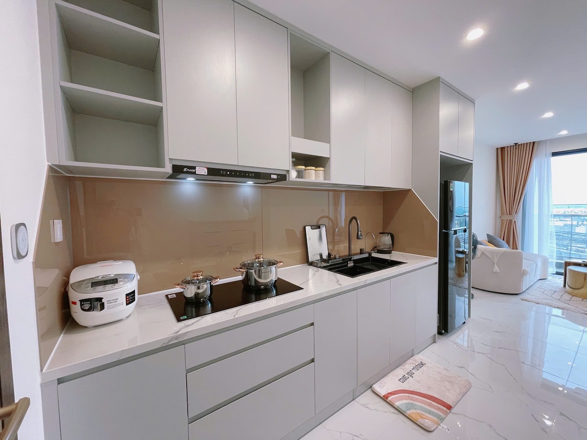 Welcome to The Belicia House – a modern-style apartment with bright tones and a minimalist yet elegant design. Natural light fills the space, creating a fresh and relaxing atmosphere. ⚠️ ⚠️ Note: According to the building’s policy, short-term guests (<3 months) cannot register fingerprints for access to common facilities and elevators.Guests will instead use Face ID or resident card for building entry Shared amenities such as the swimming pool are reserved for long-term residents only