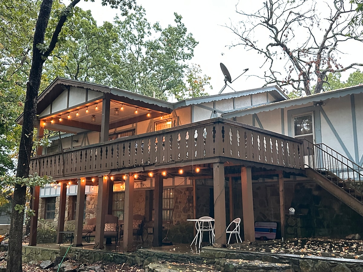 This unique place has a style all its own. Located 1 mile outside Crowder and a 3 minute drive from the Crowder boat ramp. The large deck has a sitting area, gas grill & hot tub. Enjoy the 6 mile lake view on the deck & the fire pit out front. The living room with a vaulted ceiling adds a cozy feel to the cabin. Located 45 minutes from Robbers Cave, 10 minutes from Arrowhead Golf course and 15 minutes from Yogi Bears Jellystone park. A great Airbnb destination for fishermen and hunters as well.