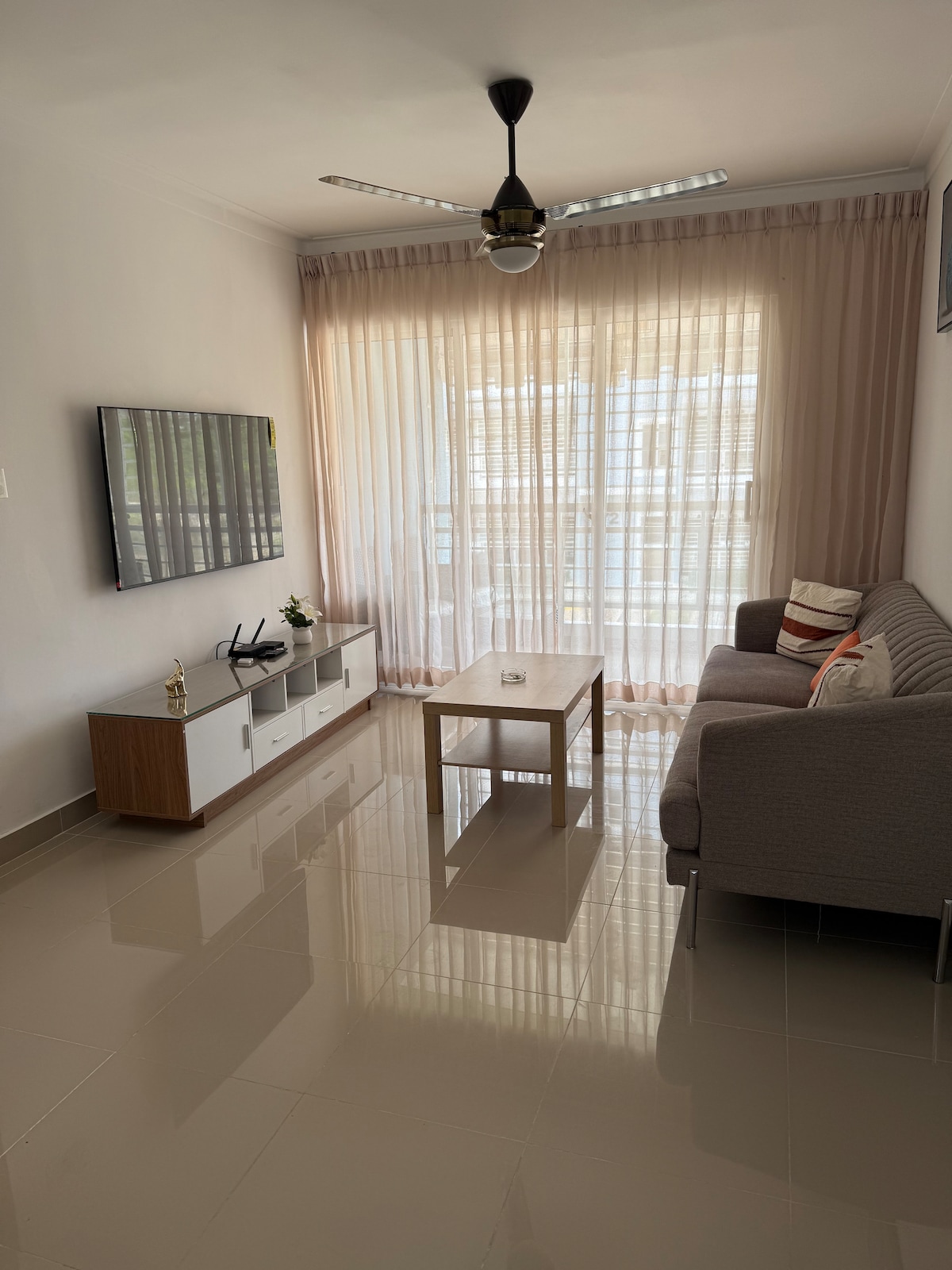 広々とした静かな居心地の良いアパートで、2つの寝室と2つのバスルームがあり、冷水とお湯が出ています。それぞれに専用のエアコン、メインルームにテレビがあり、もう1つはバルコニーにあります。 Mc Donalds、Jades、Kfc、Wendys、Pizza hub、Papa Johns、Little Cesars、ole、Bravo、the siren、Price smart、Supermixなどのショッピングセンターから数メートルです。
