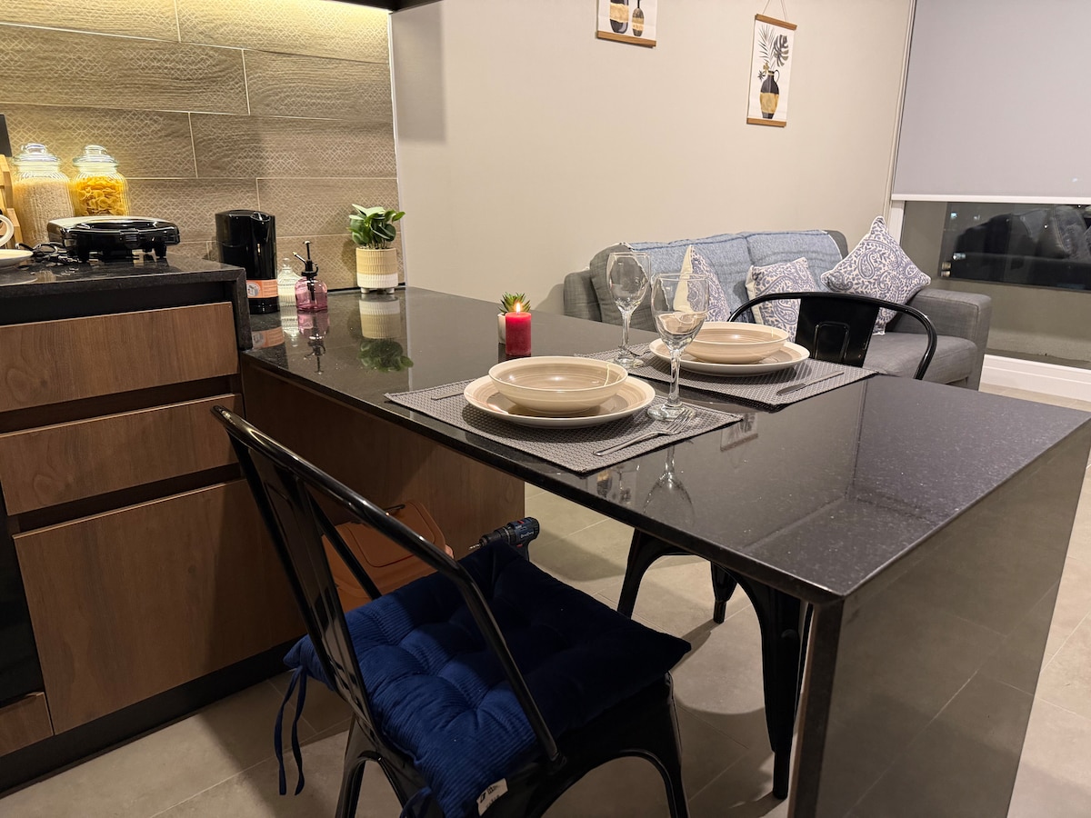 市内中心部にあるこのモダンで新しいアパートの暖かさをお楽しみください。細部まで考え抜かれたデザインで、1階にはプール、スーパー、レストラン、ジムなどのサービスが揃っています。 快適で実用的な滞在をお楽しみいただけるよう、以下の設備を備えています。 🍽️設備の整ったモダンなキッチン 📺 Wi-Fi、ストリーミングプラットフォームにアクセスできるスマートテレビ 🚙専用駐車場 ♨️ファン 🏊♀️プール 💻ワークスペースとミーティングスペース 👕ランドリー ✨パーソナライズされたサービス