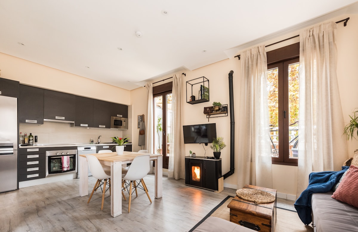 Si queréis estancias a largo plazo mejor preguntar directamente. Moderno ático de 55m en el centro de Alcalá con chimenea y 30m de terraza. Perfecto para familias, parejas y viaje de trabajo. Bus/taxi a Madrid y aeropuerto a 50 metros. El parking es comunitario y se encuentra a escasos 200m del alojamiento. Es necesario acceder primero al apartamento para recoger el mando del parking y luego aparcar. Los carritos de bebé se pueden dejar en la sala de contadores durante la estancia.