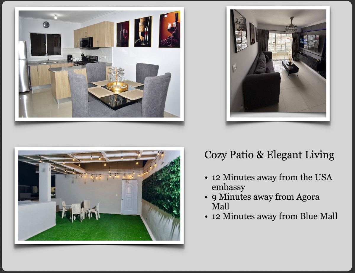 安全な場所にある家具付きのアパートで、24時間セキュリティと電気⚡️(インバーター付き)を提供しています。4階にあるこの2ベッドルームのコンドミニアムは、広々としたレイアウトで、居心地の良いリビングルーム、ダイニングエリア、設備の整ったキッチン、ランドリースペースがあります。高速Wi-Fi、エアコン、Netflix対応テレビ、お湯などのモダンなアメニティをお楽しみください。 住宅複合施設には、のんびり散歩できる場所、バレーボールコート、バスケットボールコートがあります。さらに、専用の駐車スペースも1台分あります。