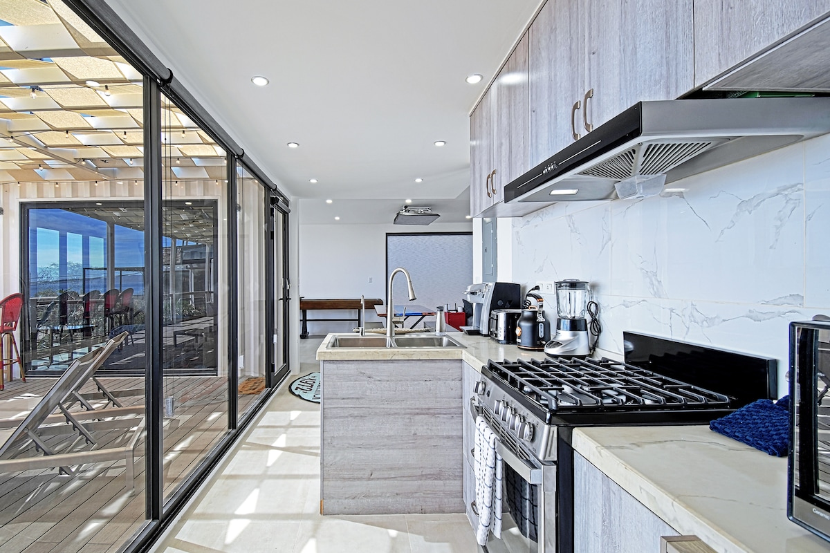 20 -30ノットへようこそ。ゲームナイト、アドベンチャー、リラクゼーションのために設計された、洗練された5寝室/4バスルームの再利用された輸送用コンテナのエコプロパティ(隣接する2つの家)です。 20ノット:キングサイズベッドを備えた2つの寝室、1つのバスルーム、ファイヤーピットハンモックとデイベッドを備えた大きなデッキ、すべてが息をのむような景色を見下ろしています。30ノット:寝室3室、キングサイズベッド、バスルーム3室、8人用ホットタブ、レトロなビデオゲーム、シャッフルボード、ファイヤーピット付きの広々としたデッキ、屋外シーティングエリア、ハンモック、無料のゲスト用収納ロッカー。