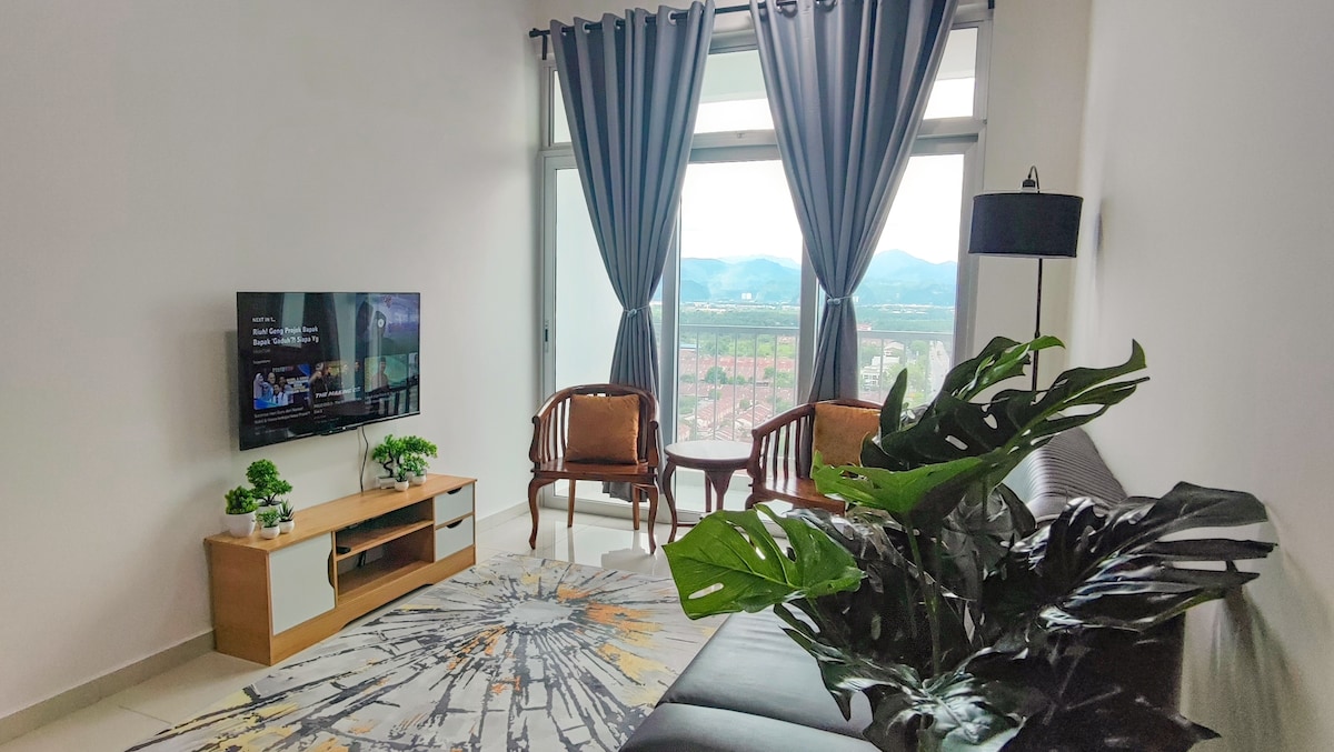 We prefer guest with family rather than with friends. In Islam cohabitation is forbidden before married. No intimate activity-ies please. Enjoy the green scenery of ipoh and limestone mountains from level 20th with your beloved family. We provide -indoor games and toys to spend quality time with your family. -Wifi -TV with Disney+, (Netflix and other streamings on your own account) No hot shower. No water dispenser. No aircond at the hall. No cleaning fee to guest (we handle that for you)