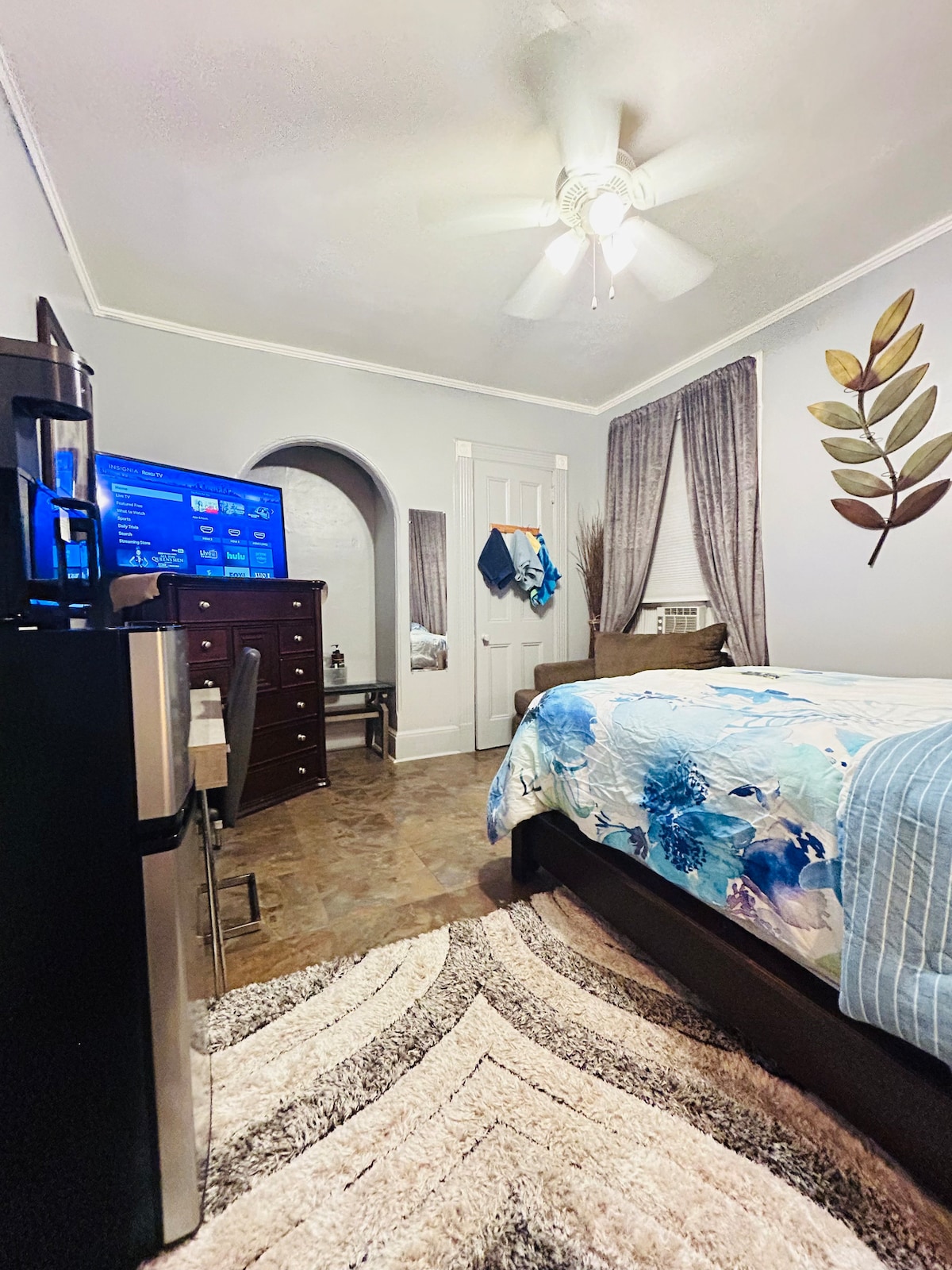 ご自宅のような宿泊施設へようこそ!この快適な2階📶の1ベッドルームアパートメントには、専用バスルーム、リラックスできる居心地の良いリビングエリア、朝の一杯を楽しむのに最適なコーヒー、紅茶ステーションがあります。ご滞在中に簡単な食事や軽食を作るための電子レンジとトースターもあります。リビングエリアには55インチのテレビがあり、ストリーミングやムービーナイトを楽しむのに最適です。寝室には、高品質のリネンを備えた快適なクイーンベッドがあり、安らかな眠りをお約束します