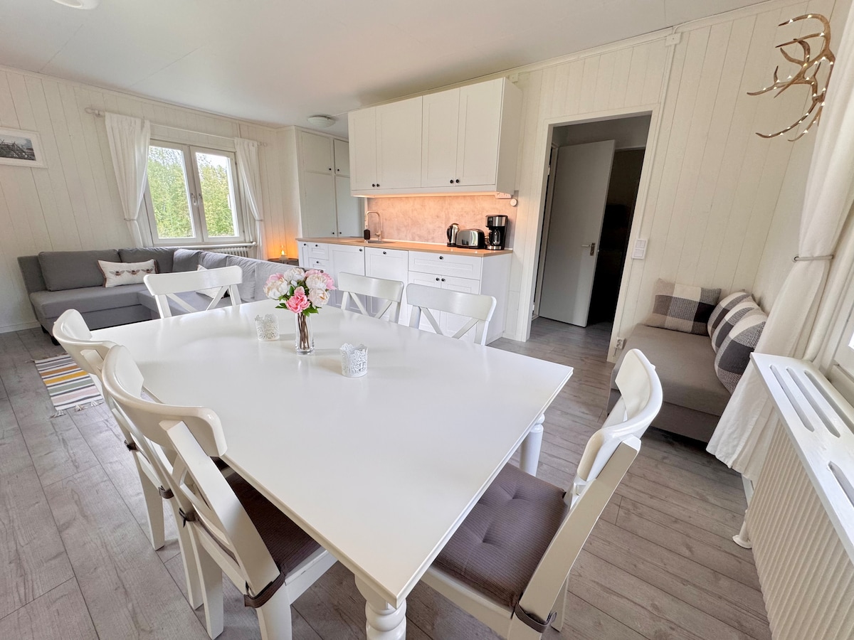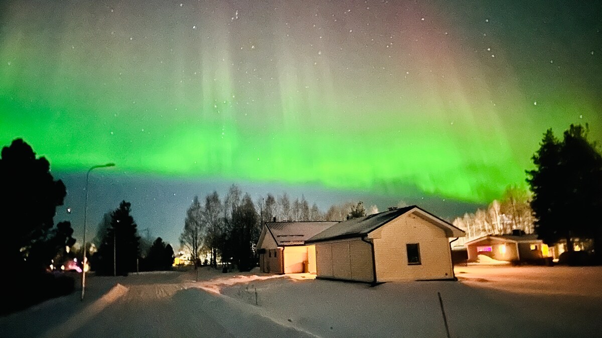 フレンドリーな村にある居心地の良い家。人気のサケ釣りの川、レイニオ川の隣。家の裏には丘があり、冬にはそりで滑るのに最適です。裏庭に薪を使ったサウナがあり、冒険の後にリラックスできます!近くでカヤックやカヌーを楽しむことができ、暗い時にはオーロラを見たり、夏には魔法のような夜を楽しむことができます。地球上の小さな楽園です!