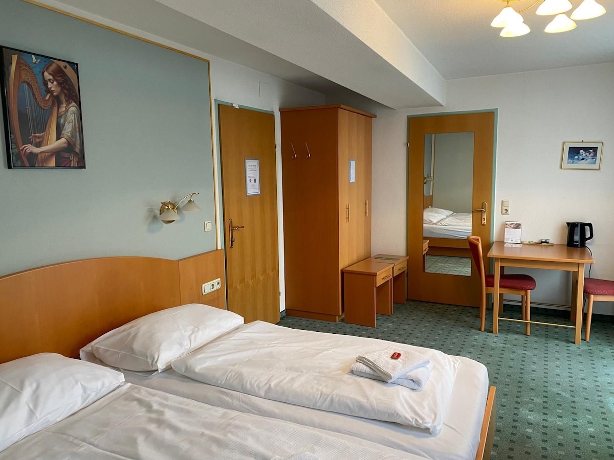 Ihr großes Studio Nr. 208 im 2. Stock ist ausgestattet mit einem Doppelbett (Kingsize), TV, WLAN, Duschbad/WC und kleiner Pantry-Küche. Darüber hinaus hat es einen direkten Zugang zu einer Terrasse hofseitig. Das Studio befindet sich auf der ruhigen Hofseite. Die schalldichten Fenster sorgen für eine angenehme Nachtruhe.
