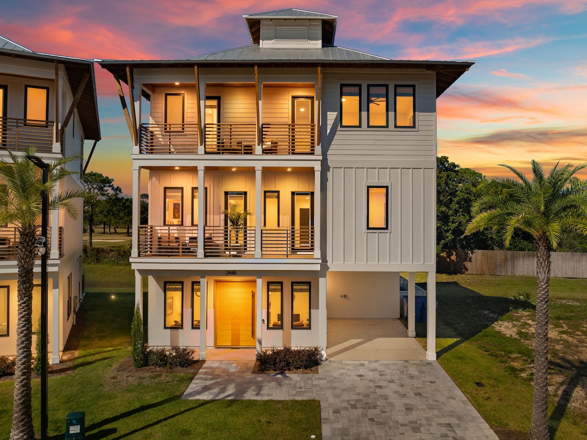 You'll love this luxurious beach getaway for its private heated pool, outdoor lounging, blazing fast internet, chef's kitchen and upscale appointments. We're a five-minute walk to the beach, a five-minute drive to Camp Helen State Park, 8 minutes to Rosemary Beach & 30A and 10 minutes to Pier Park! Pool heating is available for $40/day. Details below. Ask about our 6 seat golf cart available for rent for $125/day We are dog-friendly with payment of a $170 pet fee. Three dogs maximum.