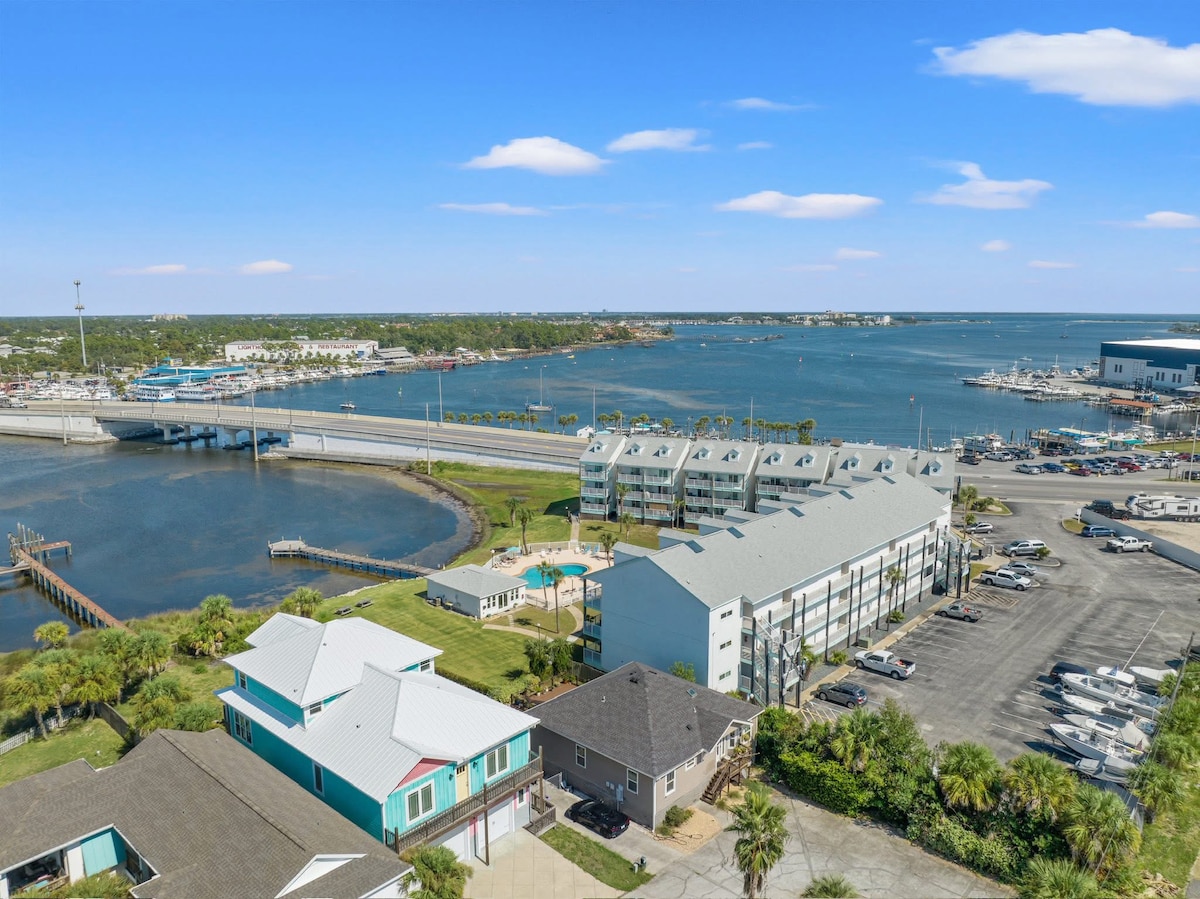 Located on Beautiful Bay Point. Only a few minute boat ride to Shell Island. St Andrew’s State Park is directly across the bay & a short car ride to the beautiful beach & Alligator Lake. Th Beautiful Pool w outdoor kitchens & Fire Pit. The Boardwalk has pontoons & other rentals directly behind the condo. New Paint, Carpet, Blinds & Furnishings. Beach/Pool Caddy, chairs, coolers, reusable plastic dishes, beach towels & pool and beach games. The beach’s stuff is,located throughout the condo.
