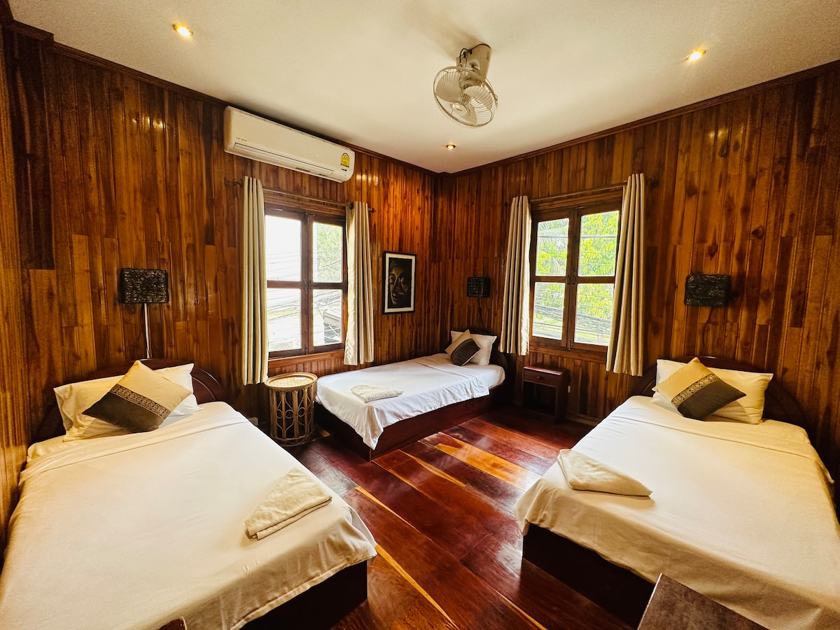 ロケーション、ロケーション、ロケーション。ドアから出るだけで、探索したいものがすべて目の前に現れます。ルアンプラバーン旧市街の中心部にあるゲストハウスは、ナイトマーケット通りと国立博物館の隣にあります。Wi-Fi、エアコン、扇風機を備えた静かなエリアのお部屋です。私たちは、壁と床に木材を使用したラオススタイルのゲストハウスを建てました。また、お部屋を毎日清掃しています。 ルアンプラバンへようこそ。私たちのようにルアンプラバンを愛していただきたいと思います!