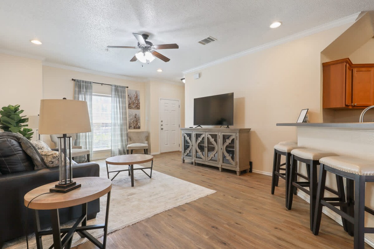 この新しく改装されたデュプレックスで、素敵で居心地の良い空間をお楽しみください! オープンプランのリビングスペースの爽やかで現代的な装飾と、Airbnbの期待を裏切らないモダンな環境をお楽しみください! このAirbnbは、どのような滞在期間にも最適です。 この宿泊施設はループにすぐにアクセスでき、テキサス工科大学から7分、サウスプレーンズモールからわずか5分です。