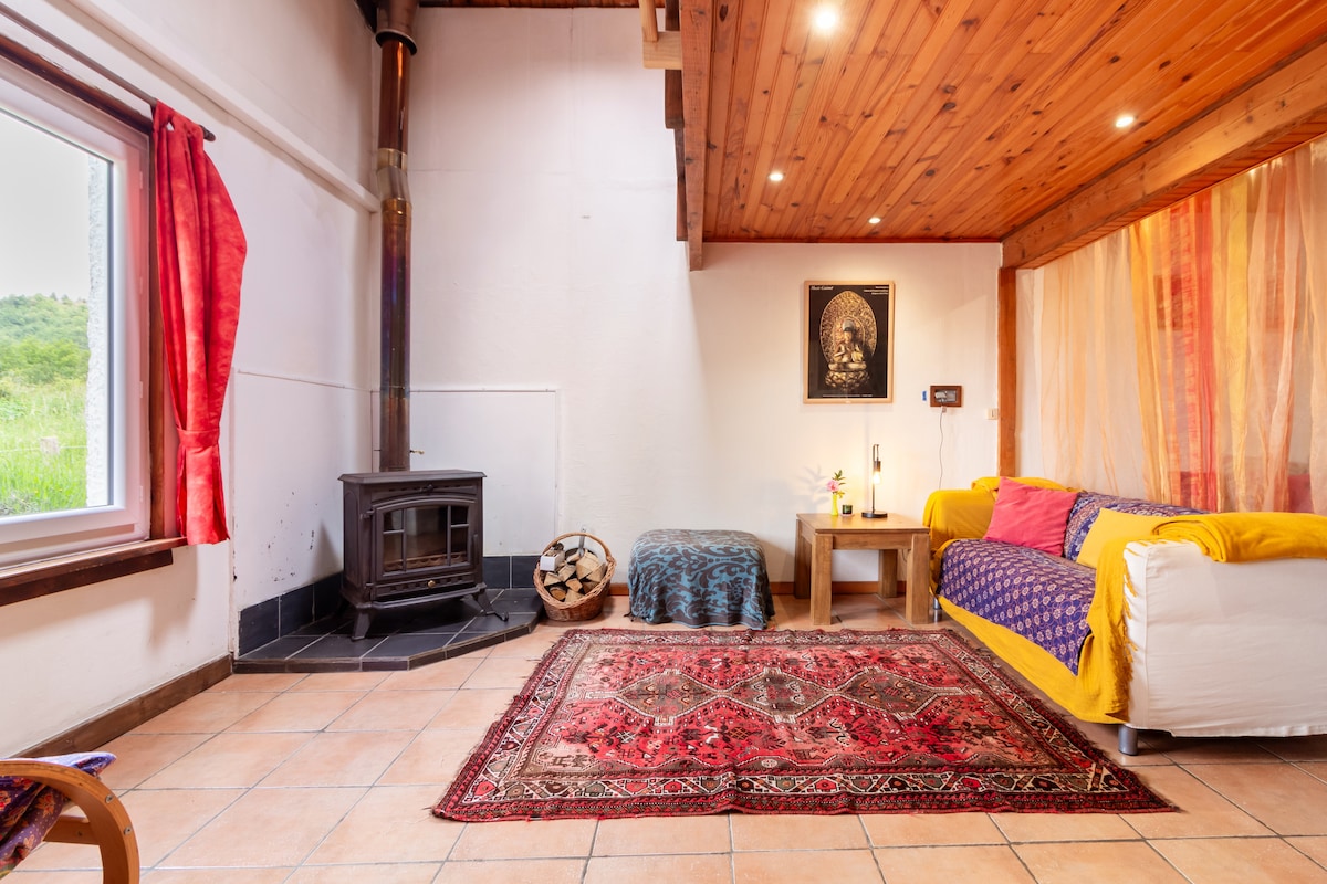 このスタイリッシュなシャレーの静けさ、景色、快適さをお楽しみください。ロマンチックな休暇や家族との自然でのんびり過ごすのに最適です。 私たちは海抜650メートルにあり、暑い夏には谷間よりも常に少し涼しく、そよ風が吹いているので、とても快適です。夜はさらに涼しくなり、ぐっすり眠れます。エアコンは必要ありません。 犬は歓迎です。滞在ごとに15ユーロです。 冬には薪ストーブがあります。薪を載せた手押し車を15ユーロで提供しています。