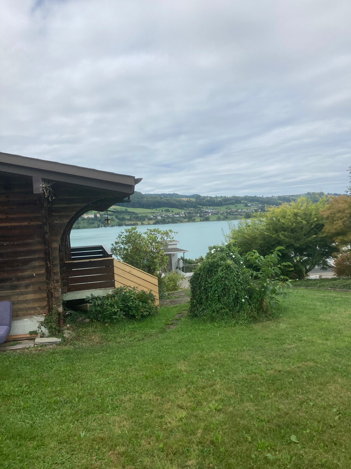 シャレー・ヒューベリ60、バルコニー、湖へのアクセス、本物