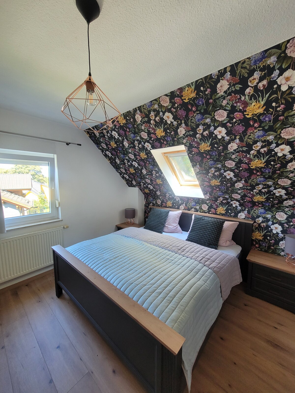 Nestled in the idyllic setting of the Thuringian Forest, our 70 m² forest loft with 30 m² terrace offers a picturesque retreat for artists, couples and free spirits. Let yourself be lulled to sleep by the crackling of the fireplace and awakened by the chirping of birds. Whether for creative inspiration, romantic moments or exploring nature - you'll find the perfect place for your time-out on our 2000 square meter property.