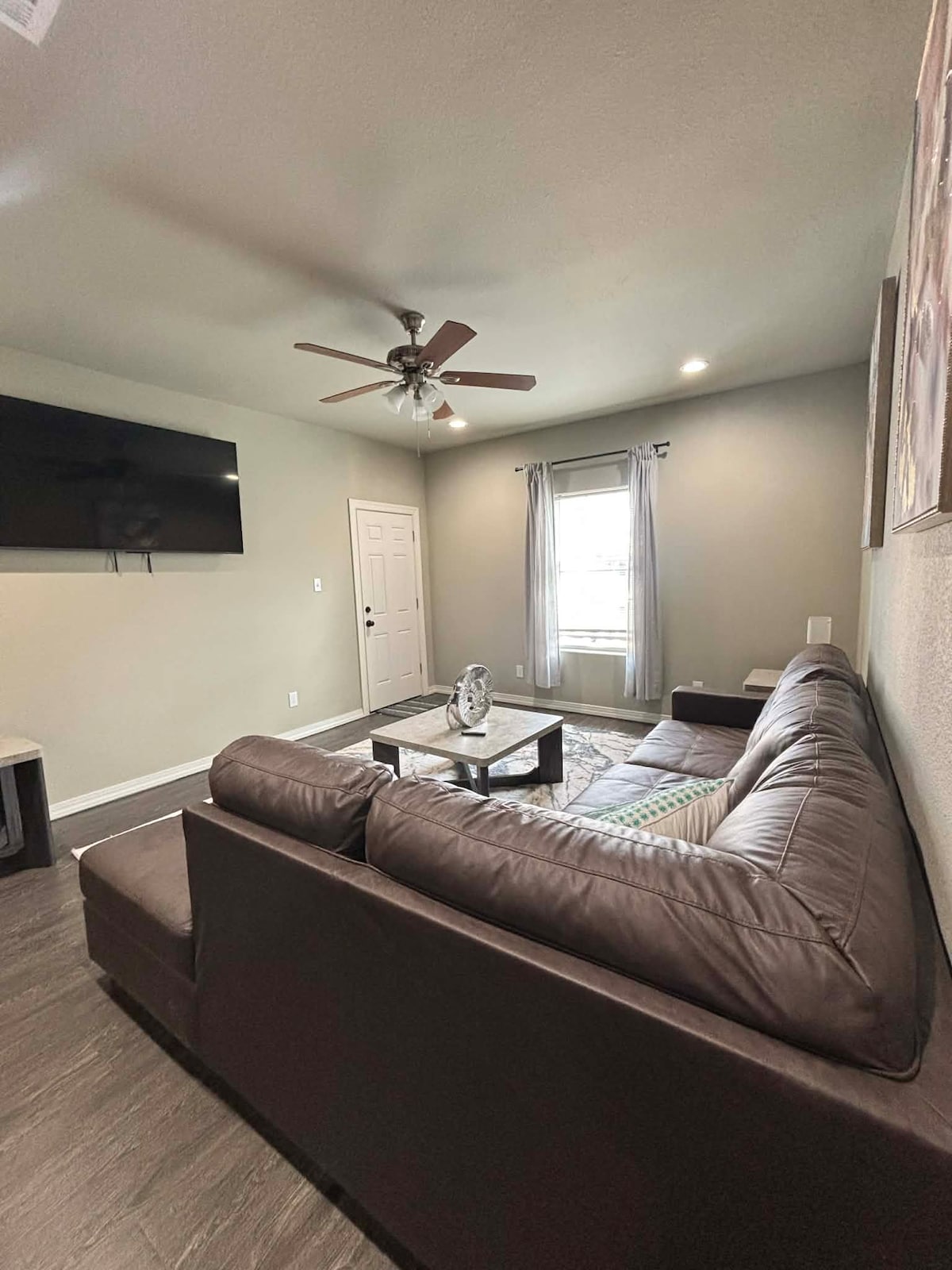Welcome to our vibrant 3BR apartment, just steps from Lamar University! Immerse yourself in the energetic atmosphere of our thoughtfully designed space. Enjoy free Wi-Fi, a fully equipped kitchen, and smart TVs in every room. The living area boasts a large sectional sofa, perfect for lounging or accommodating 2 extra guests. Three queen-size beds offer comfort and style. Experience the vibrant energy of our urban retreat – where convenience meets colorful charm for an unforgettable stay!