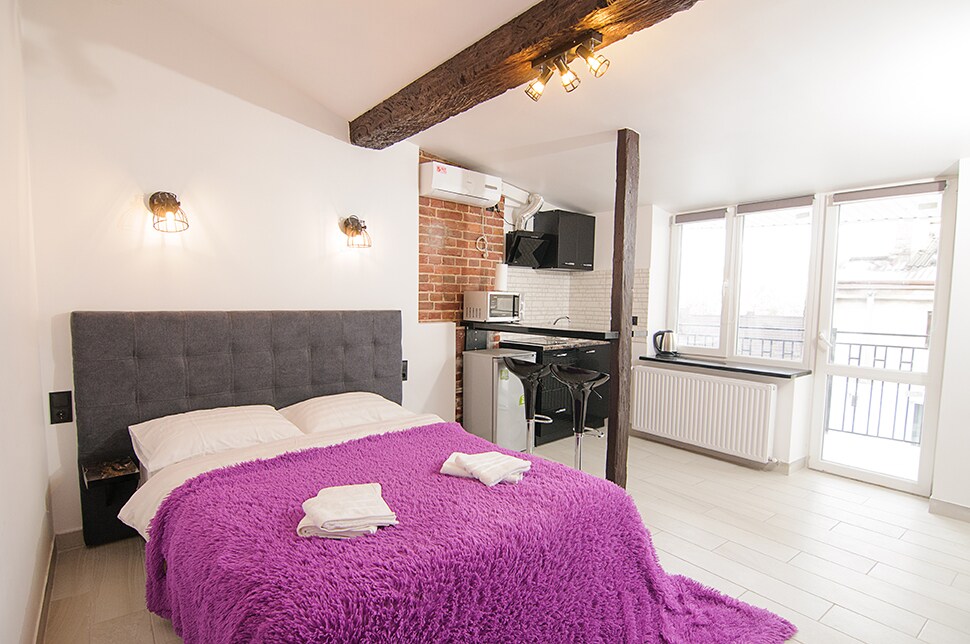 Насолодіться стильною атмосферою цього помешкання в центрі міста.Сучасна однокімнатна квартира з кухнею-вітальнею та ізольованою спальнею що знаходиться в історичному центрі Львова. Зроблений новий ремонт, вмебльована та обладнана побутовою технікою: мікрохвильова піч, чайник, посудомийна машина, фен, кондиціонер. Поруч знаходяться історичні пам'ятки архітектури, музеї, театри, магазини, ресторани та громадська парковка.