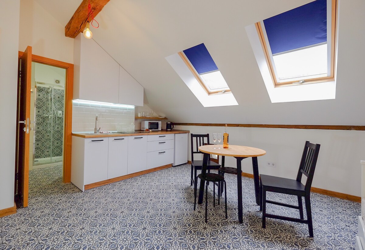 Designed for the convenience of a modern traveler, this place will make you feel like home. We've given a modern look to this space while preserving the original features of the XIX-century construction. We hope for guests understanding in case of power shortages due to the current situation in Ukraine, which are out of our control. Artisanal window shutters and original ceiling materials were added to make it unique and cozy.