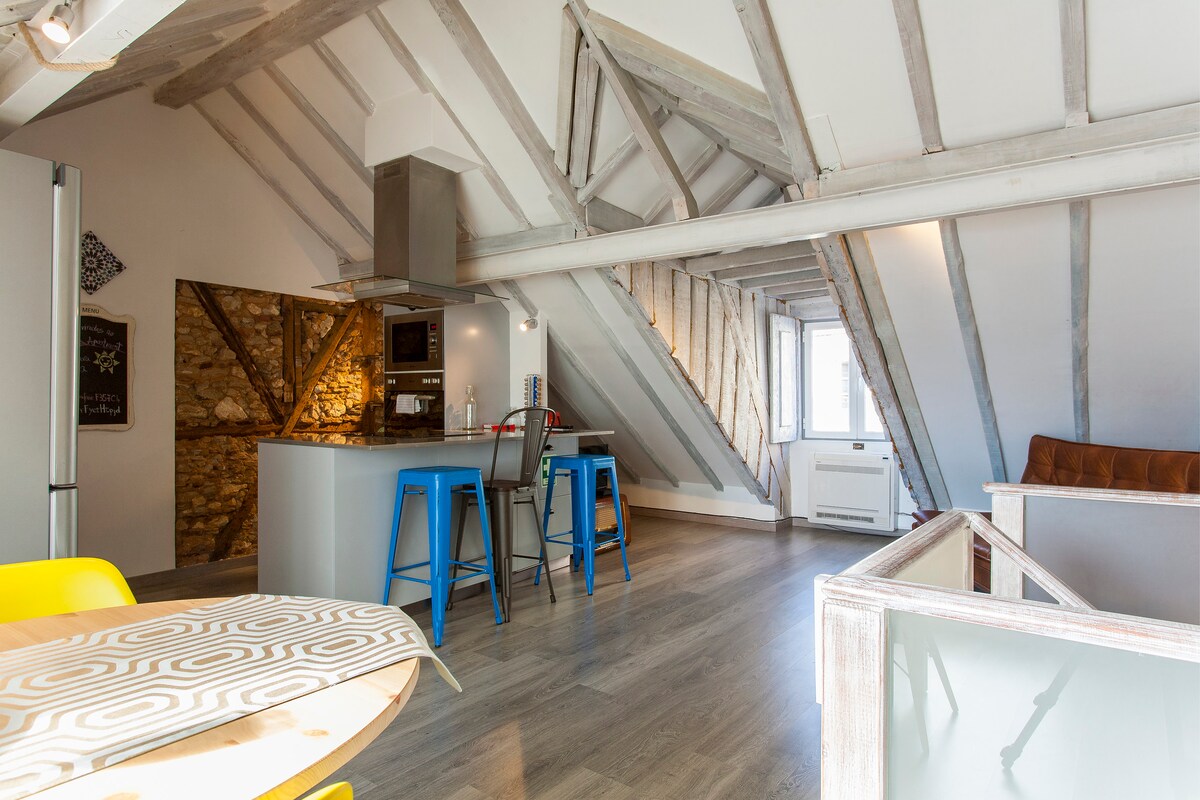 Com uma vista deslumbrante para o Rio Tejo, este espaço destaca‑se pelos seus tetos de madeira queimada em tons dourados, conferindo um ambiente único e sofisticado, e pela varanda com vista direta para o rio. Este loft moderno acomoda até 4 pessoas nos seus 94 m². Situado no 4.º andar de um edifício com elevador, encontra‑se no coração do típico Bairro de Alfama. Poderá ir a pé a todos os pontos principais da cidade fazendo desta localização um acesso privilegiado à cidade de Lisboa.