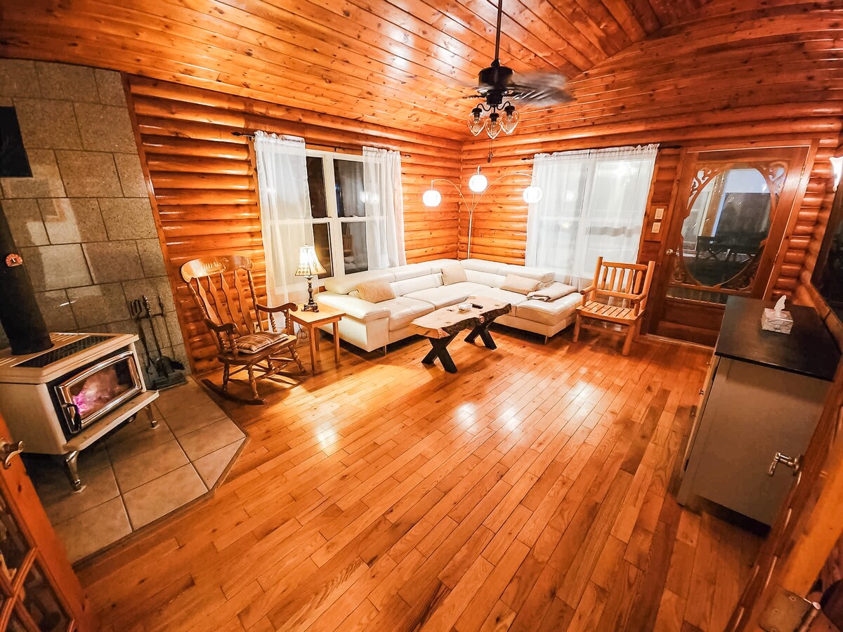 10エーカーの敷地内にある200平方フィートの素朴な三角屋根のログハウスで、バスタブ、天然の池、そして2匹の元気いっぱいの犬がいます。 キャビンは母屋から150フィートのところにあり、駐車場から徒歩300フィートのところにあります。 ロフトにはダブルベッド1台とコンバーチブルソファ1台が備わっています。 キッチンには冷蔵庫、コンロ、調理器具、食器、石鹸、リネンが完備されており、機能的です。 水は水差し/バケツシステムです。 トイレはおがくずバケツのコンポストトイレです。 薪ストーブで暖房します。ファルコンレイクから25分です。