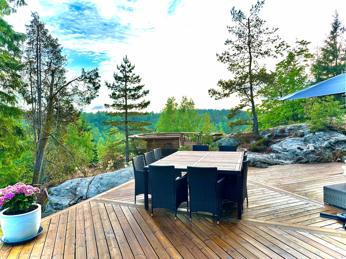 高い場所にある海が見えるコテージ。オープンプランのキッチンとリビングルーム、2つの寝室、1つのバスルーム、1つのトイレ。寝室3は、別のゲストハウスにあります。食器洗い機、電子レンジ、IHコンロ、オーブンを備えた設備の整ったキッチン。 岩場と砂浜のある海まで200メートル。 家具付きのテラス、芝生、バーベキューグリル。 食料品店、バス停、そしてオーストルとディューロンへのフェリーまで徒歩圏内。 Tjörnは、美しい自然、水泳、釣り、カヌー、ハイキングから芸術やレストランまで、あらゆるものを提供しています。