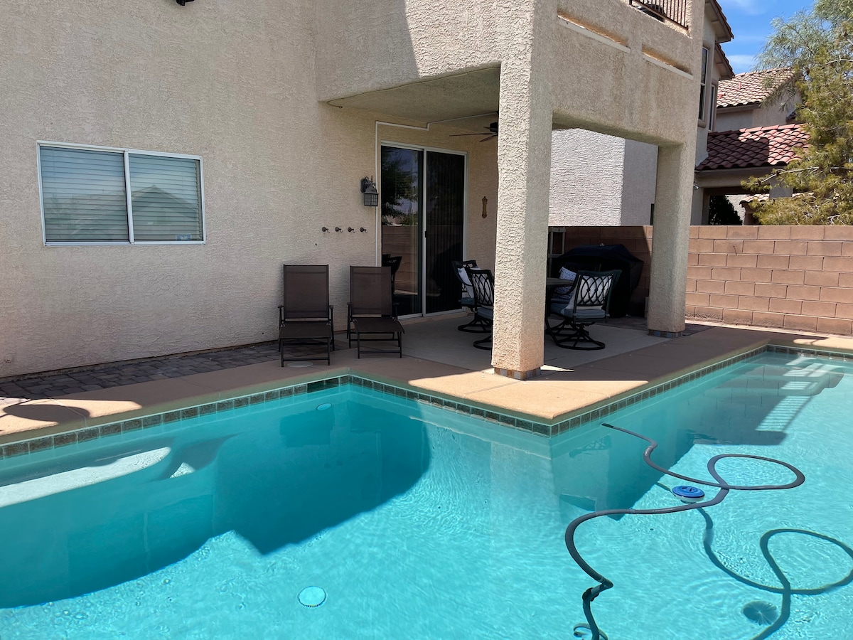 ストリップからわずか7マイル、空港から10マイルの美しい2階建ての家です。 ストリップの南に位置し、大都市の交通渋滞を避けるのに最適なロケーションです。 短期滞在または長期滞在をお探しのご家族や大人数のグループに最適です。 プールで水遊びをしたり、ジャグジーでリラックスしたり、車で15分未満(交通状況により異なります)でラスベガス・エクスペリエンスに参加したりするのに最適な宿泊先です! とても静かなエリアです。パーティーや大音量のエンターテイメントは禁止です。