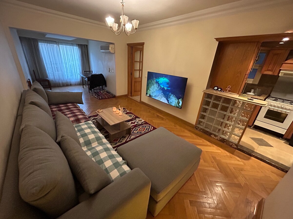カイロ(マーディ)のどこにでも行ける場所の真ん中に位置する豪華なまるまる貸切のアパートです。お部屋は新しく家具が取り付けられ、エアコン、よく設計され、すべてのアメニティが備わっており、とても清潔で静かです。アパートは高速道路から10分、ナイル川通りと地下鉄駅から徒歩圏内です。近くにはコーヒーショップ、レストラン、スーパー、薬局があります。ダウンタウンまで20分です。ホテルの基準品質と自宅のような快適さをリーズナブルな価格で提供しています。