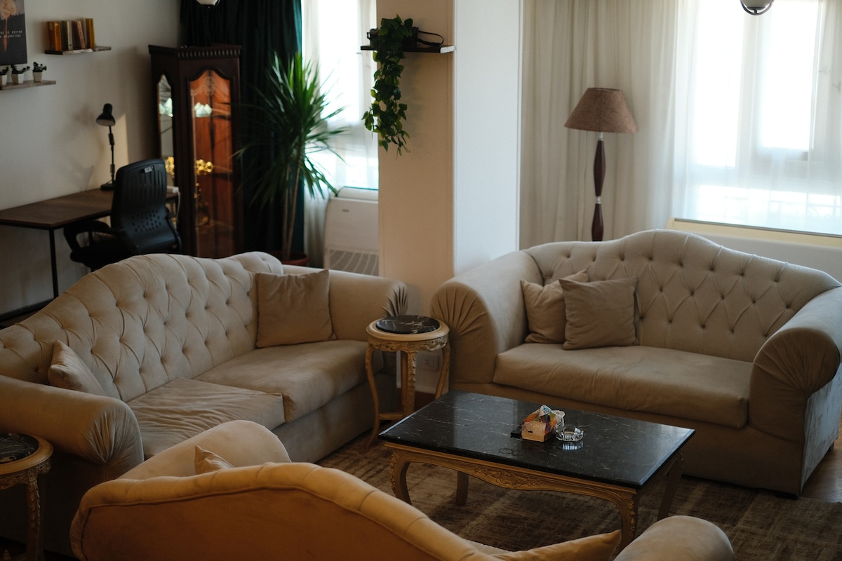 An inviting one-bedroom apartment with tall windows, local touches, and a private balcony overlooking the shared terrace. Comfortable, curated, and ideal for longer stays.