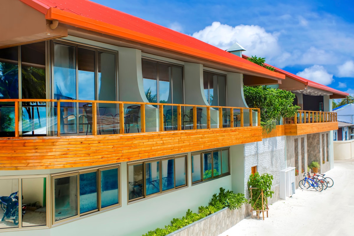 Known as the home of airbnb community. This beach front hotel has special place for airbnb travellers. Located in Hulhumale'. Nicely designed spacious rooms. It has a private terrace and beach is just 10 steps away. Very comfortable bed. Hot water