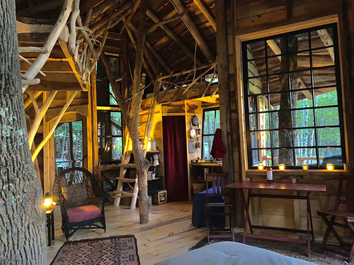 This treehouse, the Birds Nest, is open May-Oct. Our “4-Season Treehouse @ Bliss Ridge,” is open year-round: https://www.airbnb.com/h/bigtreehouseatblissridgefarm — NEW SAUNA on property! Dr. Seuss-inspired tree home perched @top of 88-acre, organic hill farm, surrounded by 1000s acres of wilderness. Designed by B'fer Roth, DIY network host of The Treehouse Guys - an authentic treehouse built WITHIN living trees, not stilts! Private hiking & panoramic views of Worcester range, MR valley!