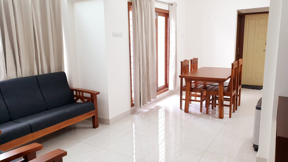 Have fun with the whole family at this stylish place. Town Space is a budget friendly Service apartment situated at Moulivakkam, near Porur. Each apartment has two bedrooms (120 sq.ft) with a big living room and a kitchen. Each bedroom has a queen size bed with attached bath. The living cum dining hall has a sofa and dining table arrangement suitable to accommodate 4 to 6 guests. The kitchen is provided with an induction stove and basic vessels to make instant foods like maggi, tea or coffee.