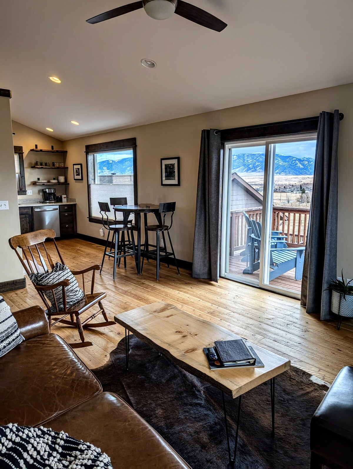 この設備の整ったゲストアパートからは、マディソン山脈の美しい景色が見えます。釣り場はすぐ近くにあり、町はわずか数マイル先です。このゲストスイートは、所有者の自宅から離れた所有者のガレージの上にあります。このカスタムアパートには、とてもプライベートな側面の入り口があり、駐車場がたくさんあり、「ビッグスカイ」の景色を楽しむためのスペースがあります。各寝室には専用のバスルームがあり、すべての人が滞在し、自分のスペースを持つのに最適な場所です。細部まで行き届いています!