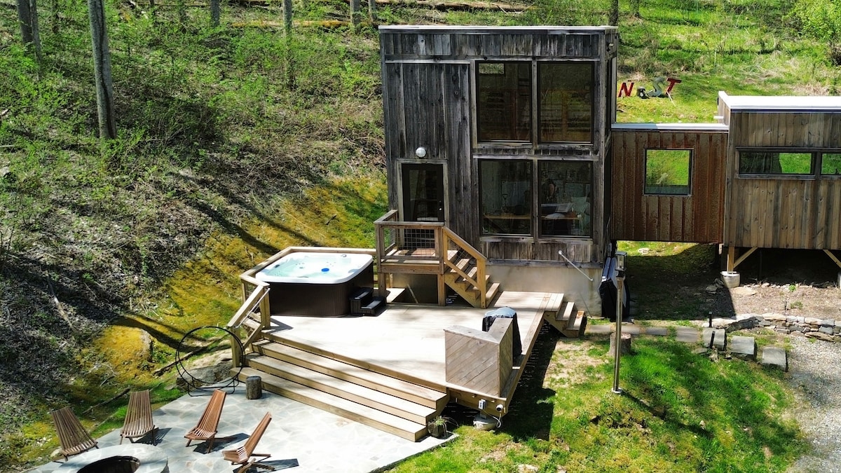 ザ・ネストは、小川と谷の上方にあるツガの木立の中にあります。あらゆる種類の車両が私道を登ってきましたが、四輪駆動をおすすめします。 The Nestの隠れ家は他に類を見ないもので、この小さなモダンな驚異には、あなたが求めるものすべてが備わっています。アシュビルのダウンタウンまで25分未満、マーシャルとマーズヒルの趣のある山の町まで数分。ハイキング、スキー、ジップラインなどのアクティビティをお楽しみください。新しいホットタブはまだ写真に撮っていません。
