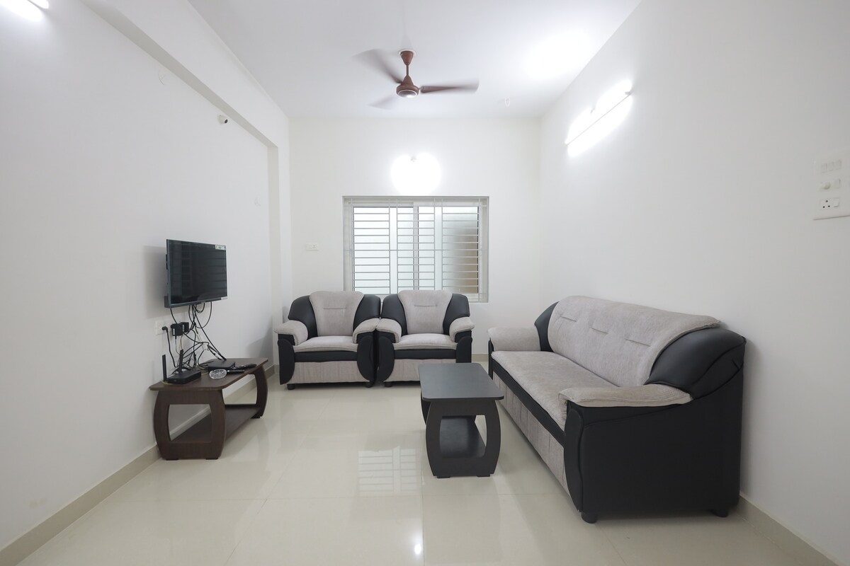 家族連れのために特別に厳選された、考え抜かれたデザインの2BHKへようこそ。週末のお出かけでも長期滞在でも、当宿泊施設はリラックスするために必要なスペースとアメニティを提供しています。 ご家族連れのお客様にご満足いただける理由: 1. 2つの広々とした寝室には、高級リネン類と十分な収納スペースがあり、大人4名様が宿泊できます。 2. 家族連れに安全で安心なエリア 3.リラックスしたり、読書をしたり、映画鑑賞をしたりするのに理想的なソファベッド付きの居心地の良いリビングルーム 4.お手頃価格でプレミアムな快適さ。