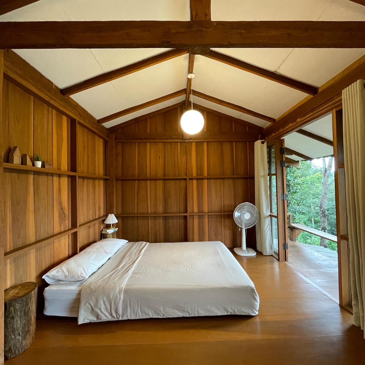 ヴィラ・ラクシュミは、パイ町から車で15分(8 km)の場所にある静かな川辺の隠れ家で、成熟したバニヤンツリーと緑豊かな熱帯植物の庭に囲まれています。 •天然温泉水を使った専用の湯船2つ • 座席と川と山の景色を望むバルコニー • 設備の整った専用キッチンとバスルーム • ヨガシャラと知恵の図書館への共有アクセス 私たちのユニークなヴィラは、星の下で浸かり、再び繋がり、美しさに包まれることができる、心に響く自然の隠れ家です。