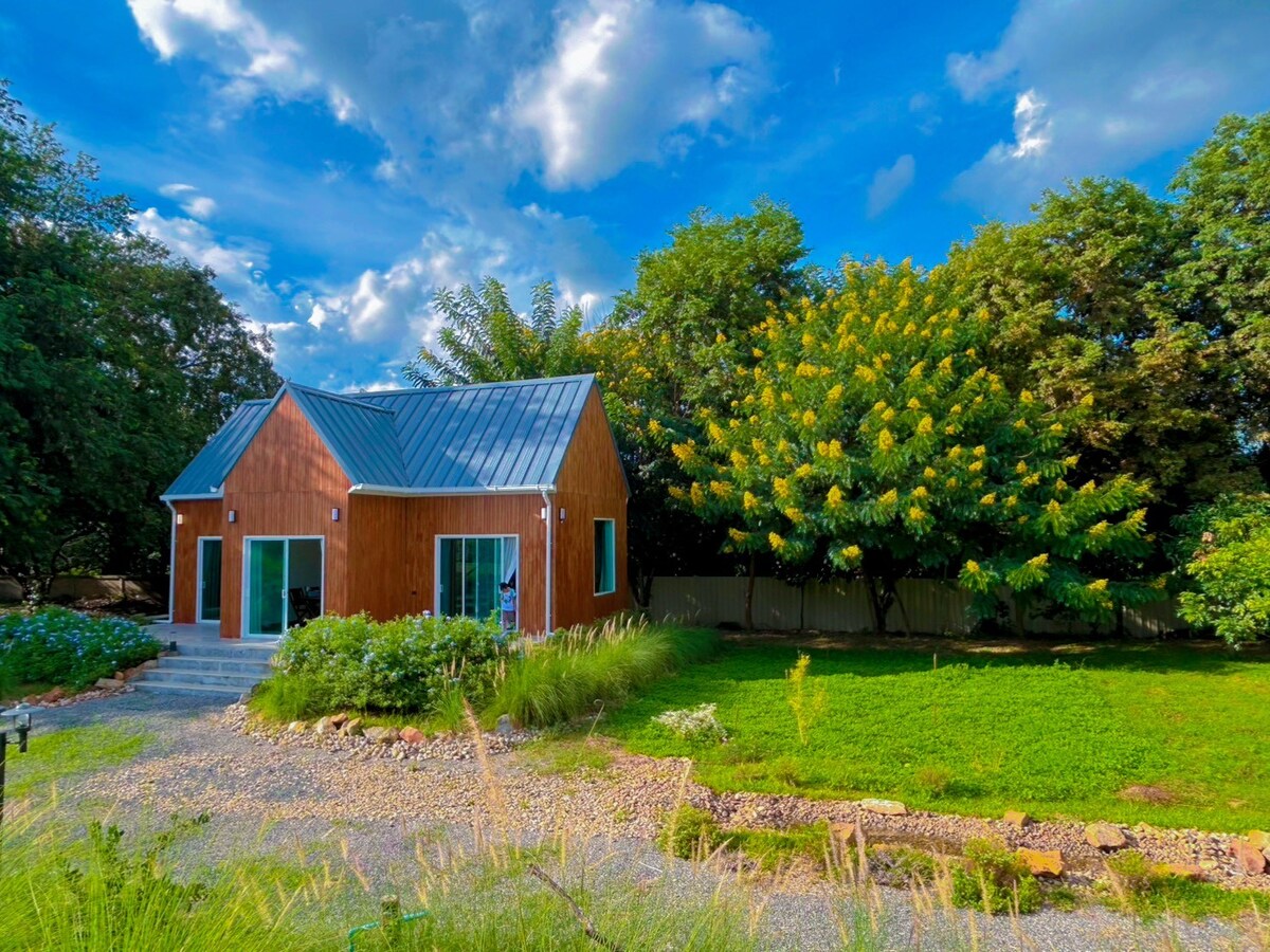 活気あるチェンマイからわずか45 kmの場所にあるモダンな家で田舎に逃れましょう。田んぼ、バナナ農園、山々、池、果樹、ハーブなどの自然のパノラマ360度ビューを楽しみながら、広大な敷地内でリラックスしてください。 設備の整ったキッチンでごちそうを作ったり、広いデッキのハンモックで読書をしたりしながら、専用の小さな牧草地で田舎の景色を楽しむことができます。