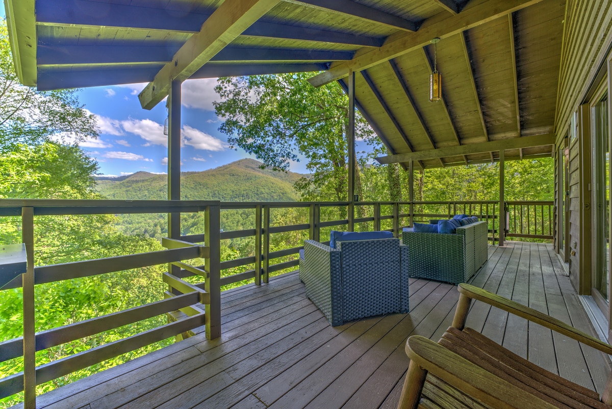 ミッドセンチュリーが山の隠れ家と出会います。 山とゴルフコースのパノラマビューがこの豪華な家に豪華な雰囲気を与えています。 この家はマギーバレーカントリークラブ(一般公開のゴルフ場とレストラン)、マスの小川、ハイキングコースから1マイルのところにあります。 カタルーチでスキーをしたいアウトドア愛好家でも、醸造所を楽しむためにアッシュビルへ日帰り旅行をしたい方でも、カジノを訪れるためにチェロキーへ行きたい方でも、ブルーリッジパークウェイをドライブしたい方でも、ここは究極の休暇です。 6名様が宿泊可能で、屋外デッキは1500平方フィート以上あります!
