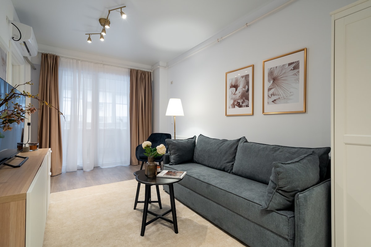 Experience the charm of our urban loft in the heart of the city! Enjoy the peace in our elegant bedroom, with wide windows that fill the room with sunlight, and settle into a luxurious marble bathroom. Located in a lovely neighborhood, this inviting space offers a fully equipped kitchen, a relaxing living area, and a small balcony. Perfect for the modern traveler who values style and comfort. Book your stay - delight in the simple luxuries and make this loft your personal hideaway.