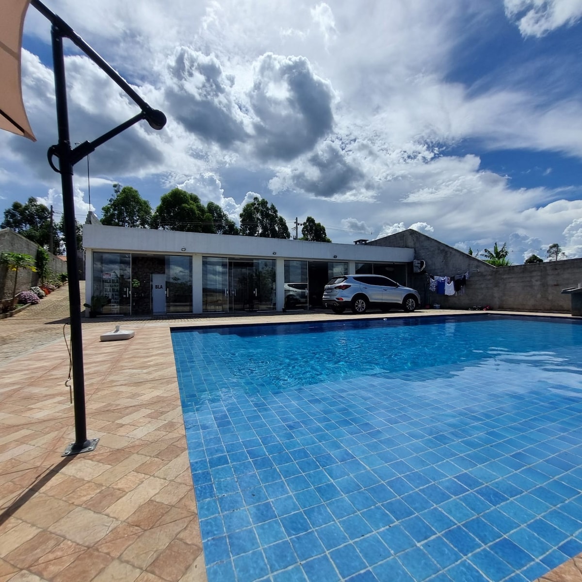 農場はマイリポランにあり、24時間ドアマン付きの閉鎖コンドミニアム内にあります。 農場までは舗装された道路です。 部屋の構成 4つの部屋があります 2つのスイート 寝室外にバスルームが1つあり、計3つのバスルームがあります。 ダブルベッド4台 床に4つのシングルサイズのマットレス。 シングルサイズのベッド1台 合計で最大14名様用の寝室構造。 ペット1匹につき100レアルの追加料金がかかります。この料金はホストに直接支払います。