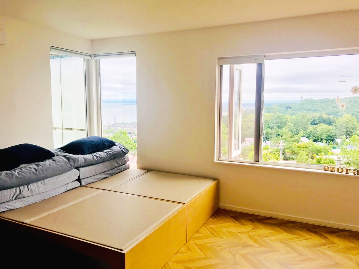 山と石狩湾が一望/絶景/小樽&札幌アクセス良し/犬宿泊OK/EnglishOK/民泊ezora