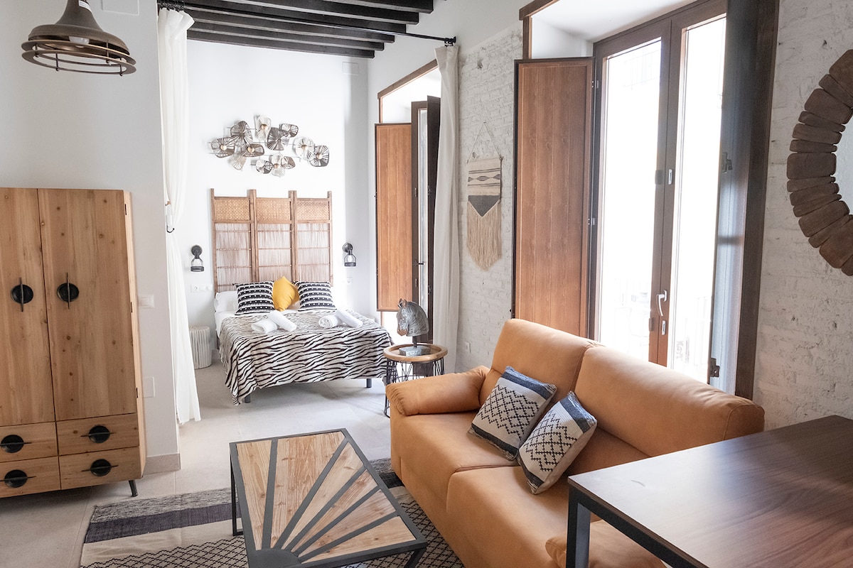 マラガのピカソ美術館の隣にあるこのロフトアパートメントの光と眺めに酔いしれよう