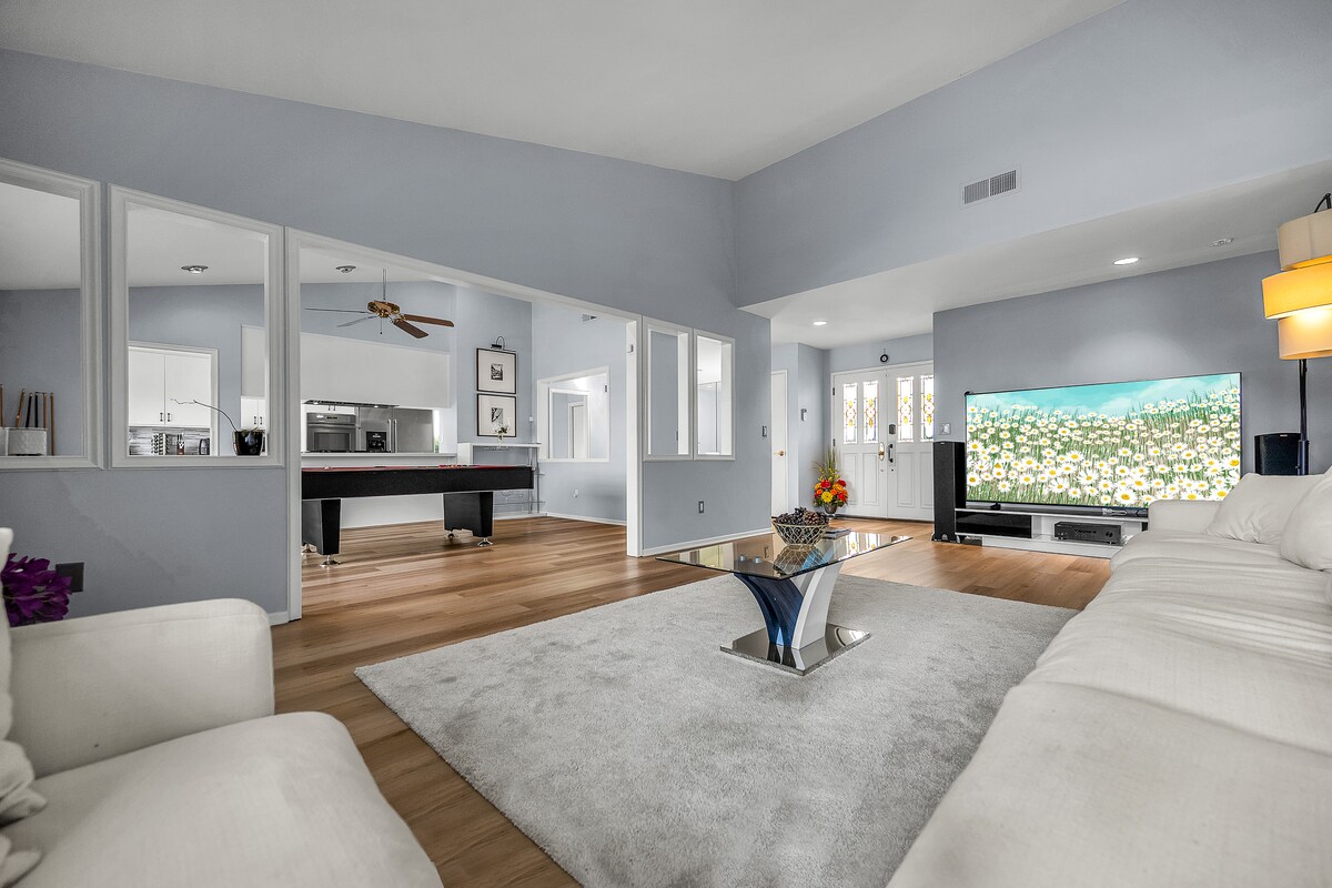 Enjoy a newly remodeled house with 4 bedrooms and 3 full bathrooms. All bedrooms feature comfortable memory foam mattresses and blackout curtains to help you rest for the next day's adventures. House features a huge backyard, perfect for families to relax and make new memories. It is in a very peaceful and quiet neighborhood, minutes away from prime shopping locations and great restaurants. A short drive away from Calabasas, Malibu, and Santa Monica.