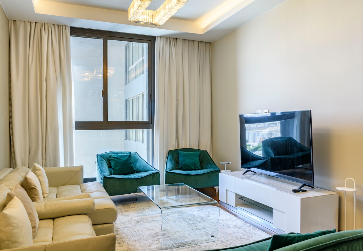 West Somid Developmentsのモダンな3ベッドルーム(320平方メートル)のホテルアパートメントへようこそ!地下1階にあり、ご家族連れ、団体、ビジネスマンに最適です。 5G Wi-Fi、5台のスマートテレビ、電動シャッター、新しい家具をお楽しみください。24時間年中無休のセキュリティ、ゲストロビー、フードデリバリー、オプションの清掃。 ゲストは共有の屋上ラウンジもお楽しみいただけます。映画の夜、リラックスした夜、家族の時間に最適です。 アラビアモールとザイードの人気スポットからわずか数分! ما نقدر نستضيف أي ثنائي عربي غير متزوج في نفس الشقة.