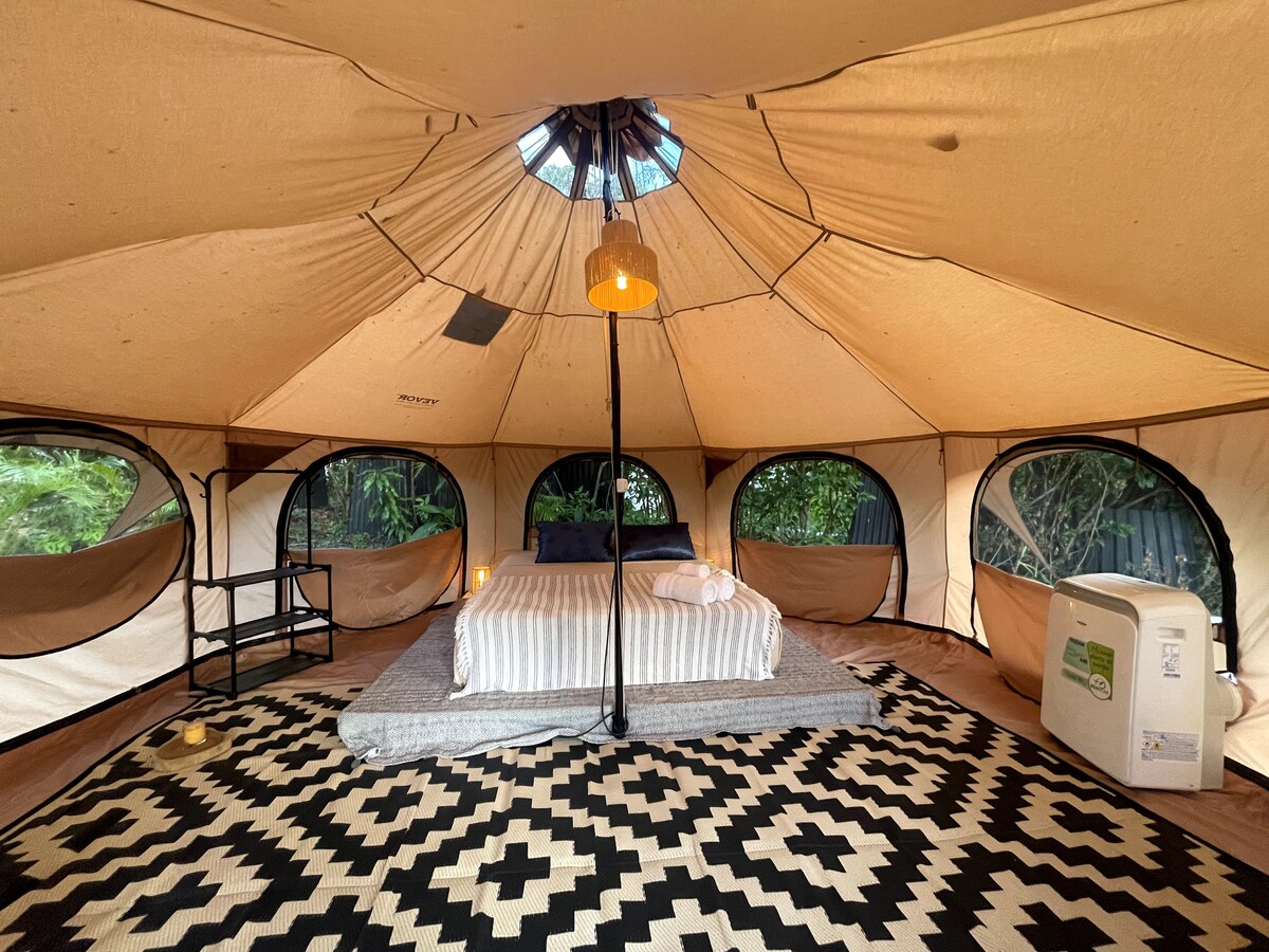 Escape to the beauty of Costa Rica with a unique glamping experience just a 3-min walk to the beach and a 5-min drive to town. Our cozy tents each feature queen-size mattresses, electricity, and are nestled in a lush, natural setting. Wake up to the sounds of monkeys, crickets, and birds, and enjoy shared outdoor bathrooms that bring you closer to nature. It’s a laid-back stay perfect for nature lovers seeking a peaceful night’s sleep after a day of, surfing, hiking, yoga, or simply exploring.