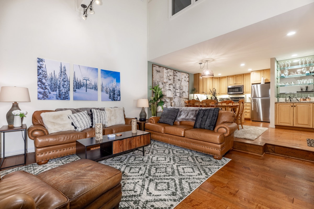 町の便利な場所にあり、ショップ、レストラン、山へのシャトルが近くにあります。 このメインフロアのユニットは4名様が快適にお休みいただけますが、5名様でもご宿泊いただけます。クイーンベッド1台、折りたたみ式ツインベッド1台、ソファベッド2台に変換できます。 このユニットを、他のレンタルとは異なるものにするために、素敵な現代的なリフォームを施しました。 古い複合施設なので、低価格にしています。本当にお得です! また、このユニットには1台分の駐車スペースのみがありますので、旅行の計画にご注意ください。