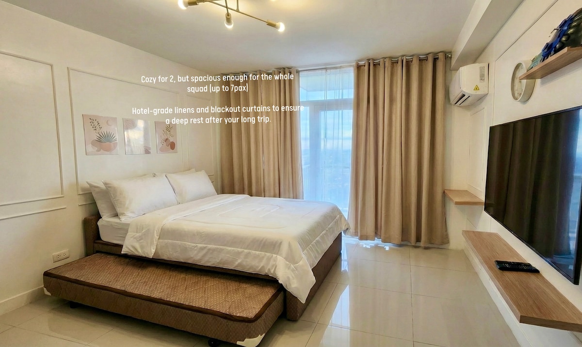 家族連れ/カップル/友人同士で、豪華な建物のアパートに滞在するのを楽しみ、中心部に位置するこの場所からあらゆる場所に簡単にアクセスできます。 空港から車で15 ~20分です。 マクタン・ニュウタウン・プライベート・レジデント・ビーチまで徒歩10 ~15分(またはサボイホテルのシャトルサービス) セブンイレブン、スターバックス、薬局、スーパー、銀行、レストラン、バー、教会、公共市場、公共交通機関まで徒歩圏内です。 ダイビングアドベンチャーとセブ歴史地区までわずか数分です。 市内中心部まで車で近いです。