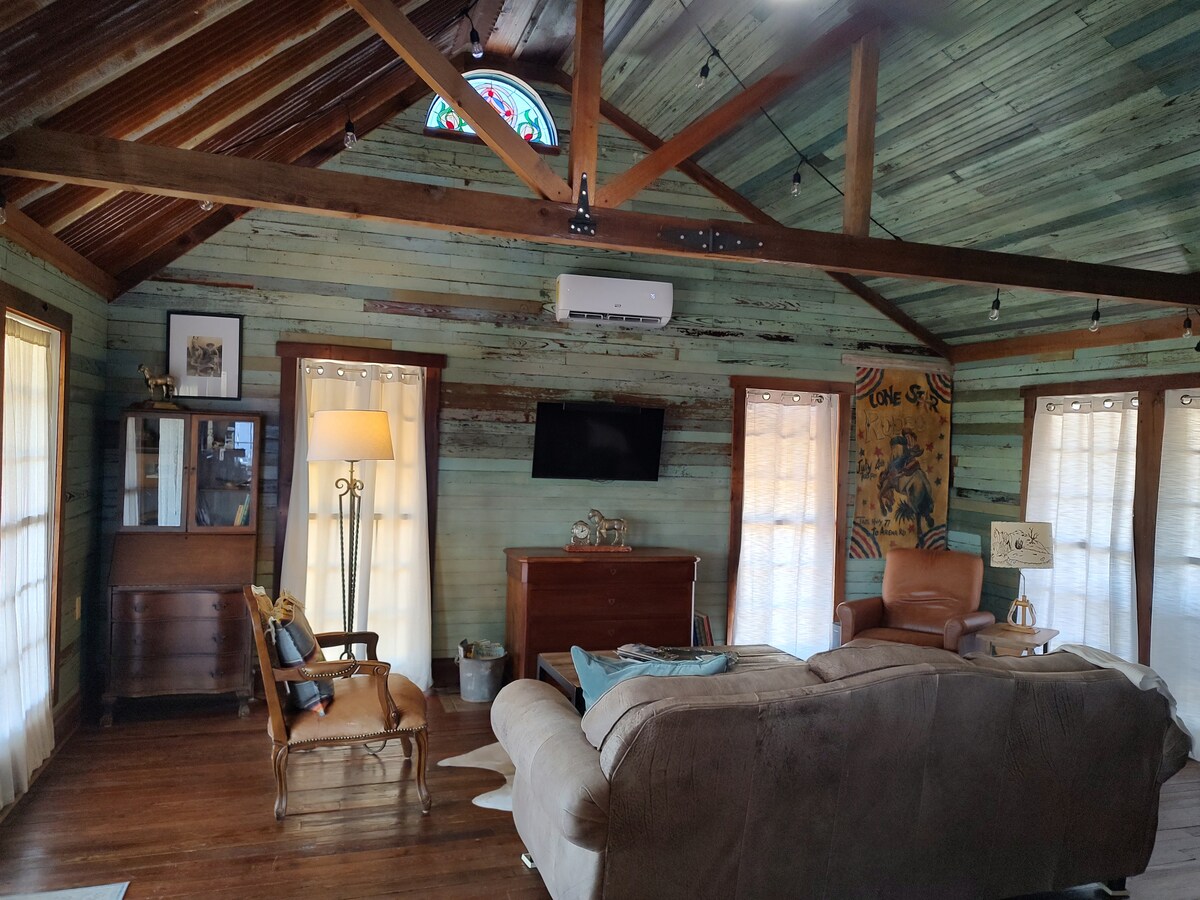 素朴で改装されたキャビン。クイーンベッド付きの寝室1室、ツインベッド2台のリビングエリア、フルバスルーム2室、キッチン付き。 散策できる散歩道があります! 湿った小川と1エーカーの池。 外のピクニックエリア。キャッチ・アンド・リリース釣り。 敷地内で草を食む美しい馬。 複数の屋外エリアをお楽しみいただけます。 キャビンから池の景色を楽しめるバックデッキのシッティングエリア。 くつろぎ、穏やかな夜の休息をとるのに最適な場所です。オースティン市の端まで38マイルです。