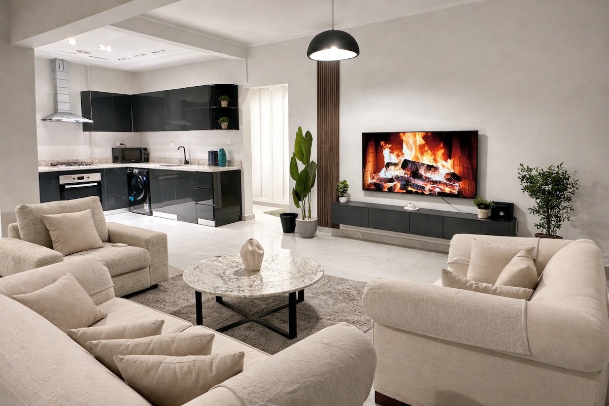 デグラ・マーディの賑やかな中心部にある静かな隠れ家へようこそ! 最高のロケーションにあるこのシックなアパートは、ご家族や旅行者の方々にとって静かな天国です。 スタイリッシュな家具が置かれたモダンでエレガントな空間に足を踏み入れましょう。2つの居心地の良いベッドルームには、豪華な寝具が備わっており、ゆっくりと眠ることができます。 設備の整ったキッチンでは料理を楽しむことができ、快適なリビングエリアではカイロの活気ある街を1日探索した後にリラックスすることができます。