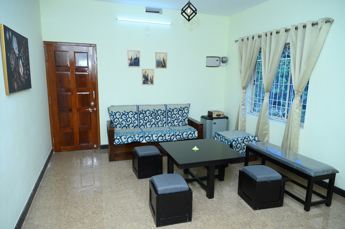 -エアコン完備の2つのお部屋とモダンなバスルーム -無料のウェルカムドリンクと軽食 -専用テラスと安全な駐車場 - 設備の充実したキッチン -無制限のWi-Fi、Netflix、Bluetoothステレオ マルペ、マットゥ、マルヴァンテ、カプの美しいビーチでリラックスしてください。クリシュナ寺院ウドゥピ、ムルデシュワル、ムーカンビカ・ダルマスタラなどの神聖な寺院を訪れてください。マニパル大学や病院にも近いので、学生や訪問者にとって完璧な拠点です。アグンベ、クドゥルティルタへのドライブとトレッキングを楽しんでください。