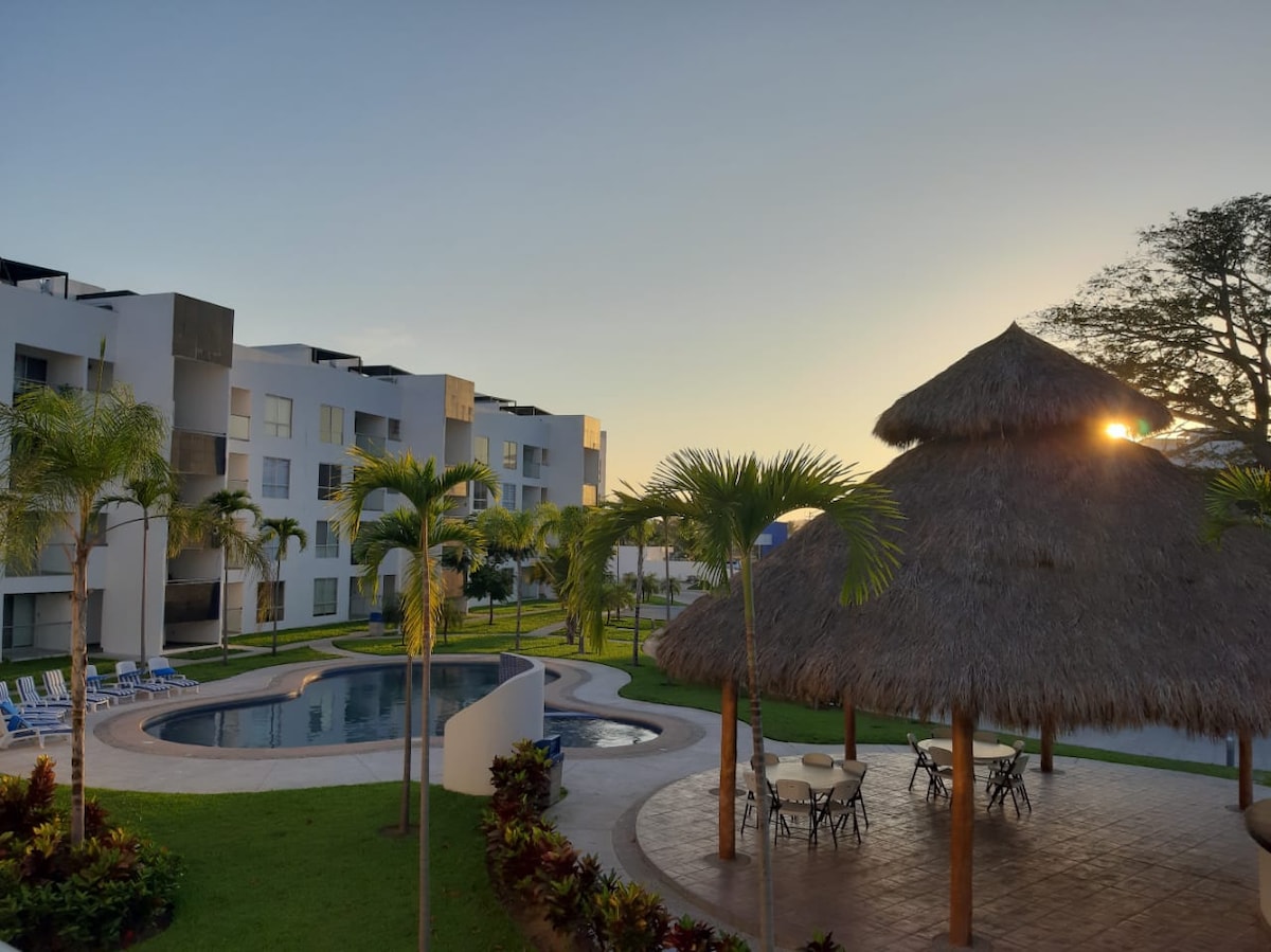 Espectacular Departamento recién remodelado con terminados de lujo y asi poder descansar con unas instalaciones únicas en Manzanillo. El complejo es de forma horizontal, cuenta con 2 piscinas muy grandes, iluminadas y climatizadas a pie de playa, con un restaurante exquisito y un ambiente de tranquilidad. También es una excelente oportunidad para tener veladas románticas con tu pareja, de viaje con tu familia, o con tus amigos, sin duda un lugar único en el mejor apartamento en la zona
